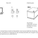 Montering med batteriklack garanterar en säkrare montering av till bilbatteri. Fästklacken är av typ B13 (batteriklackarna sitter i nederkant av batteriet).